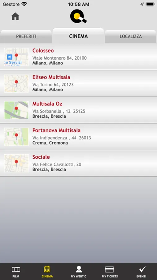 Potrai scegliere comodamente dalla mappa delle sale i tuoi posti e decidere se prenotarli ritirandoli al botteghino con almeno 20 minuti di anticipo, oppure acquistarli con carta di credito e ritirarli ai punti self service o alle casse all'ultimo momento.