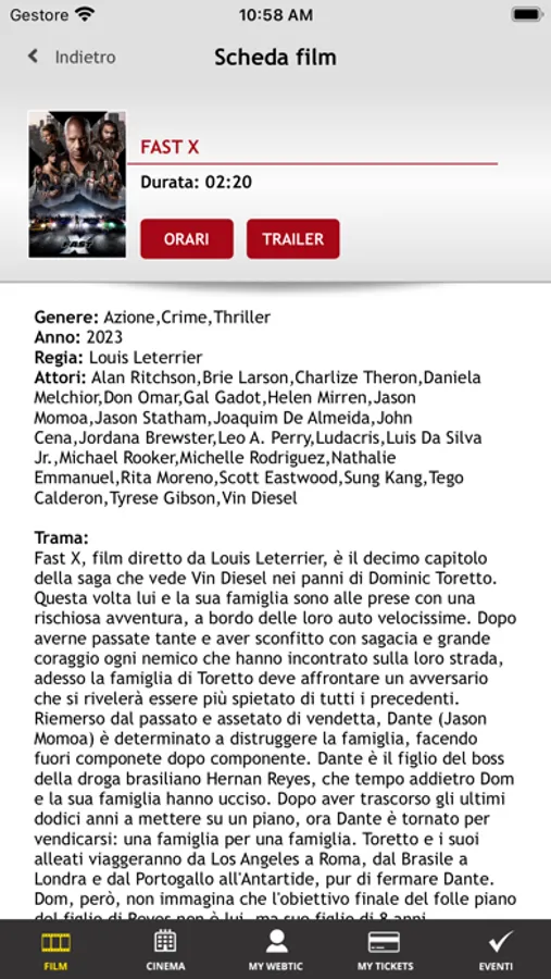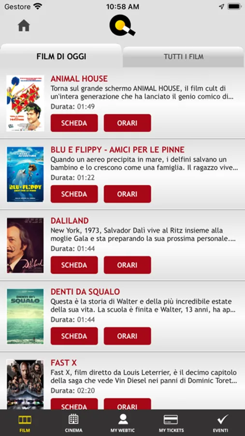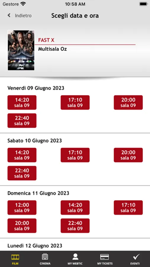 Applicazione per l'acquisto e la prenotazione dei posti nel Circuito IL REGNO DEL CINEMA.