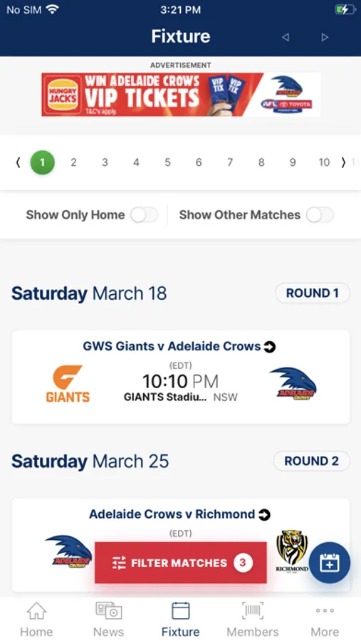 - My Club section with access to exclusive features for club members and My Crows Account holders