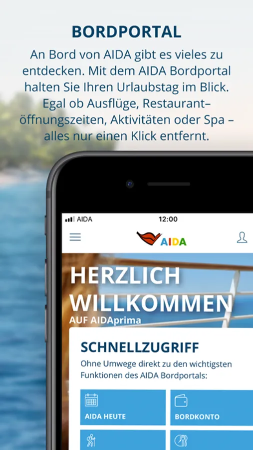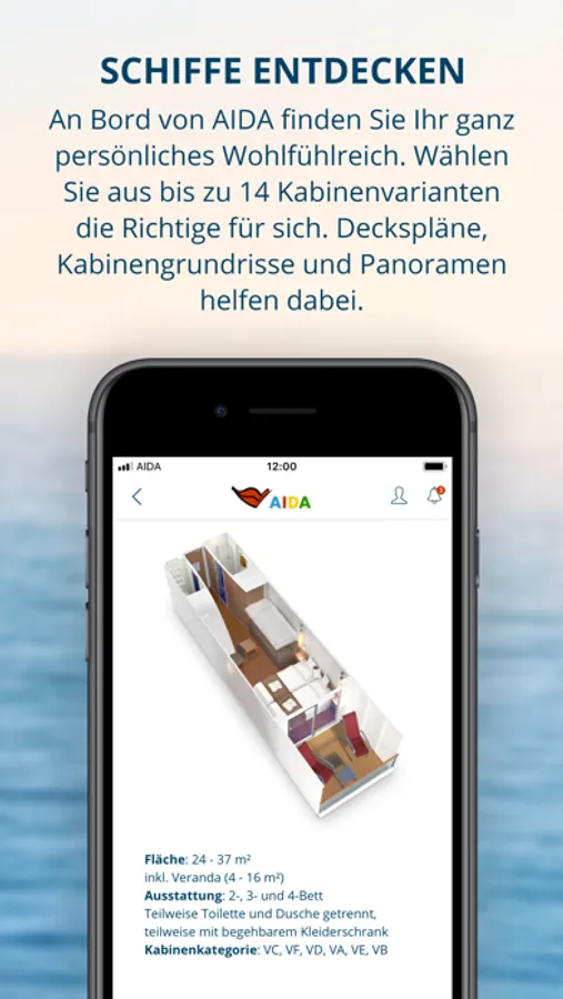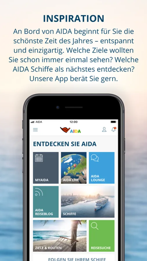 - AIDA per Fingertipp entdecken: Erfahren Sie Wissenswertes über die Restaurants und Bars, die Kabinen und öffentlichen Bereiche sowie über Ausflüge, Sport und Spa.