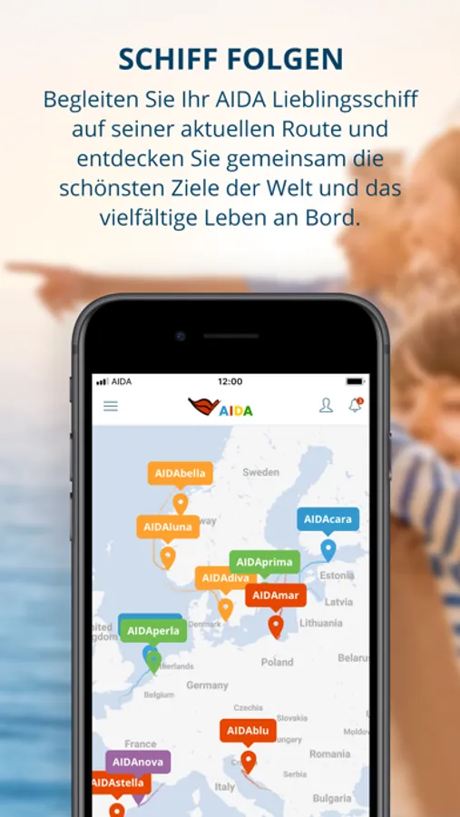 - Echtzeit-Tracking: Wählen Sie Ihr Lieblingsschiff aus der AIDA Flotte und verfolgen Sie live, was die Gäste an Bord gerade erleben.