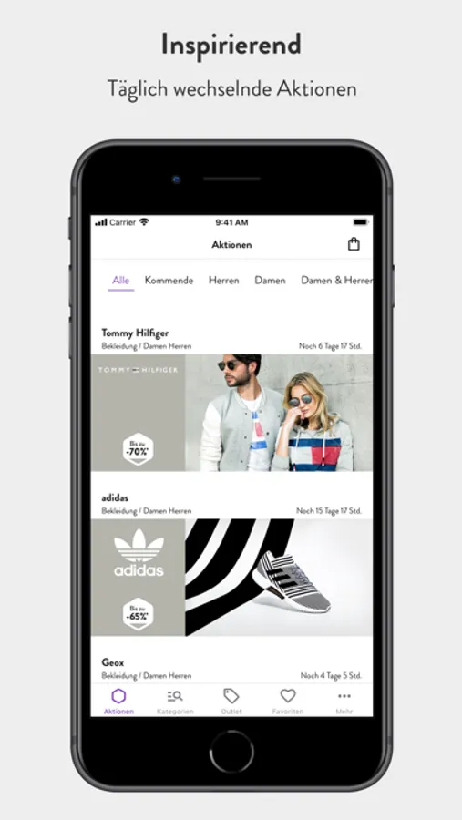 - Mehrmals täglich wechselnde Aktionen mit Top-Marken.