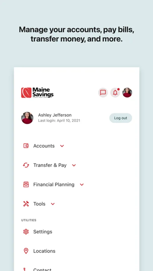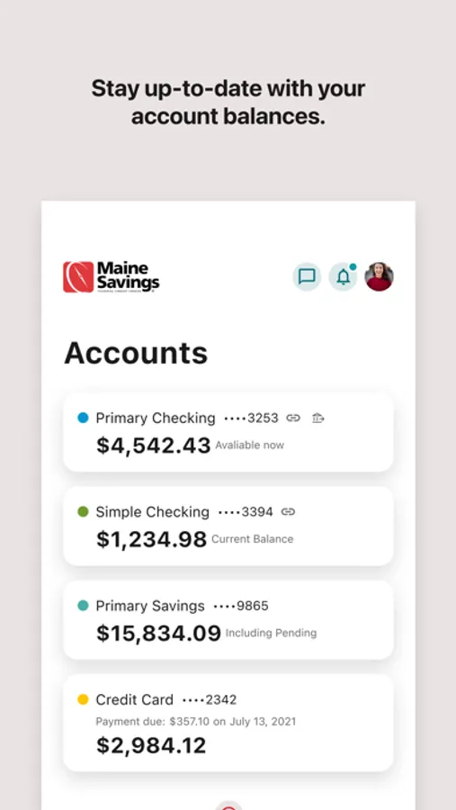 Maine Savings Digital Banking allows you to check balances, view transaction history, transfer funds, deposit checks, pay loans, manage business accounts and much more.