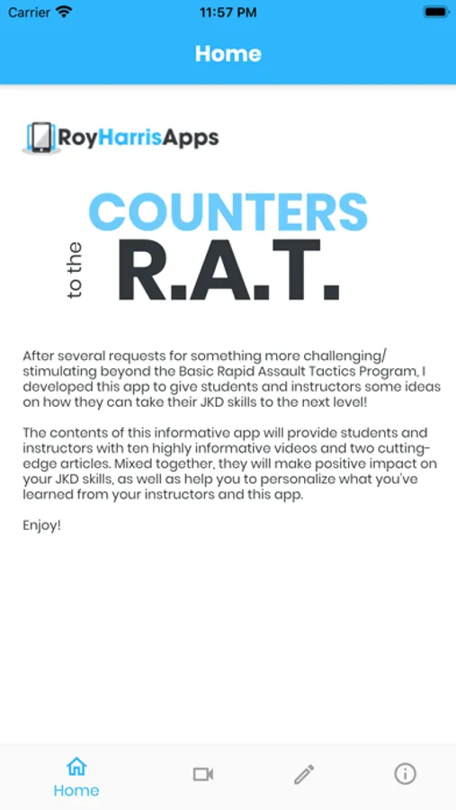 I developed this app to give experienced students and instructors some ideas on how they can take their JKD skills beyond the basic RAT program and actually develop something functional and personal!