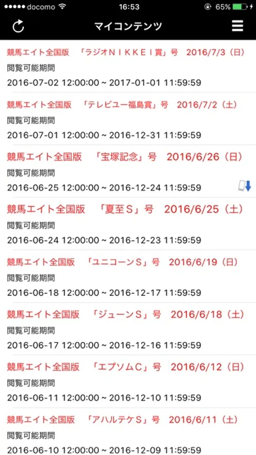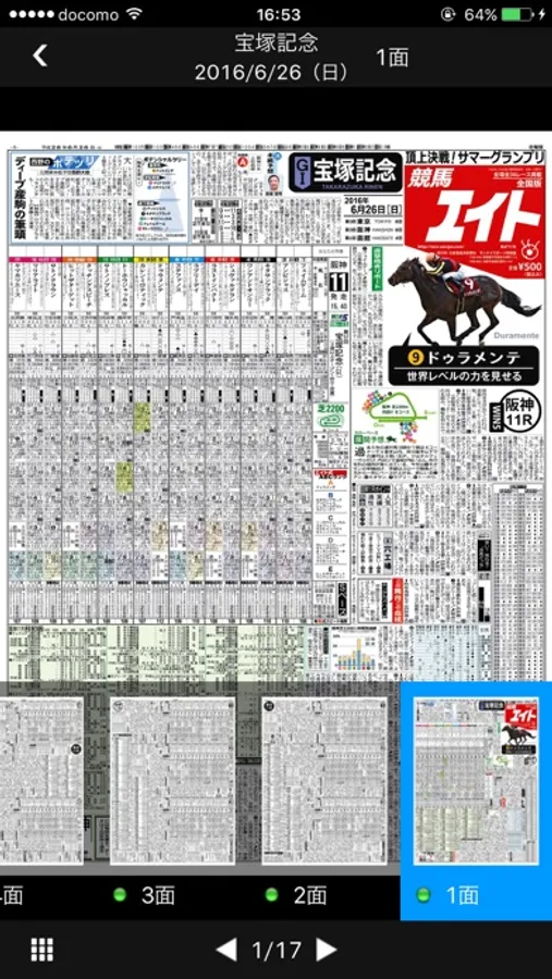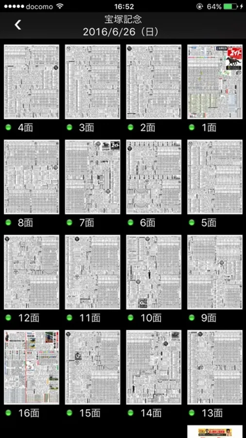 ・購入済の紙面一覧が表示されます。お読みになりたい紙面をタップすると、紙面データの取得が始まります。