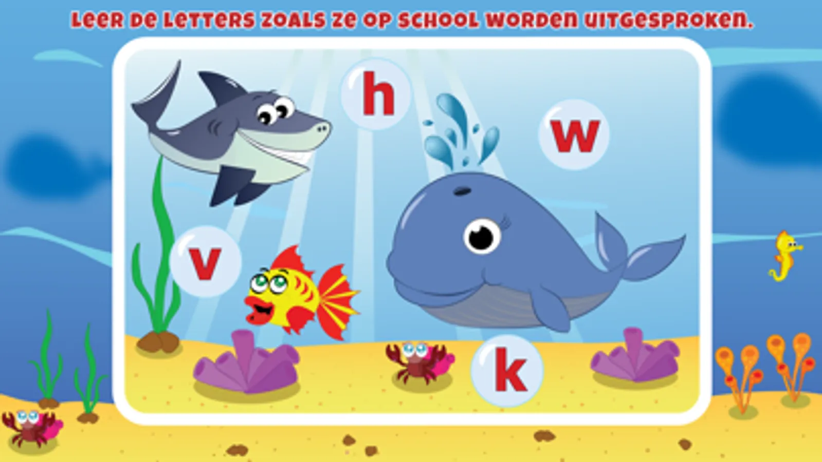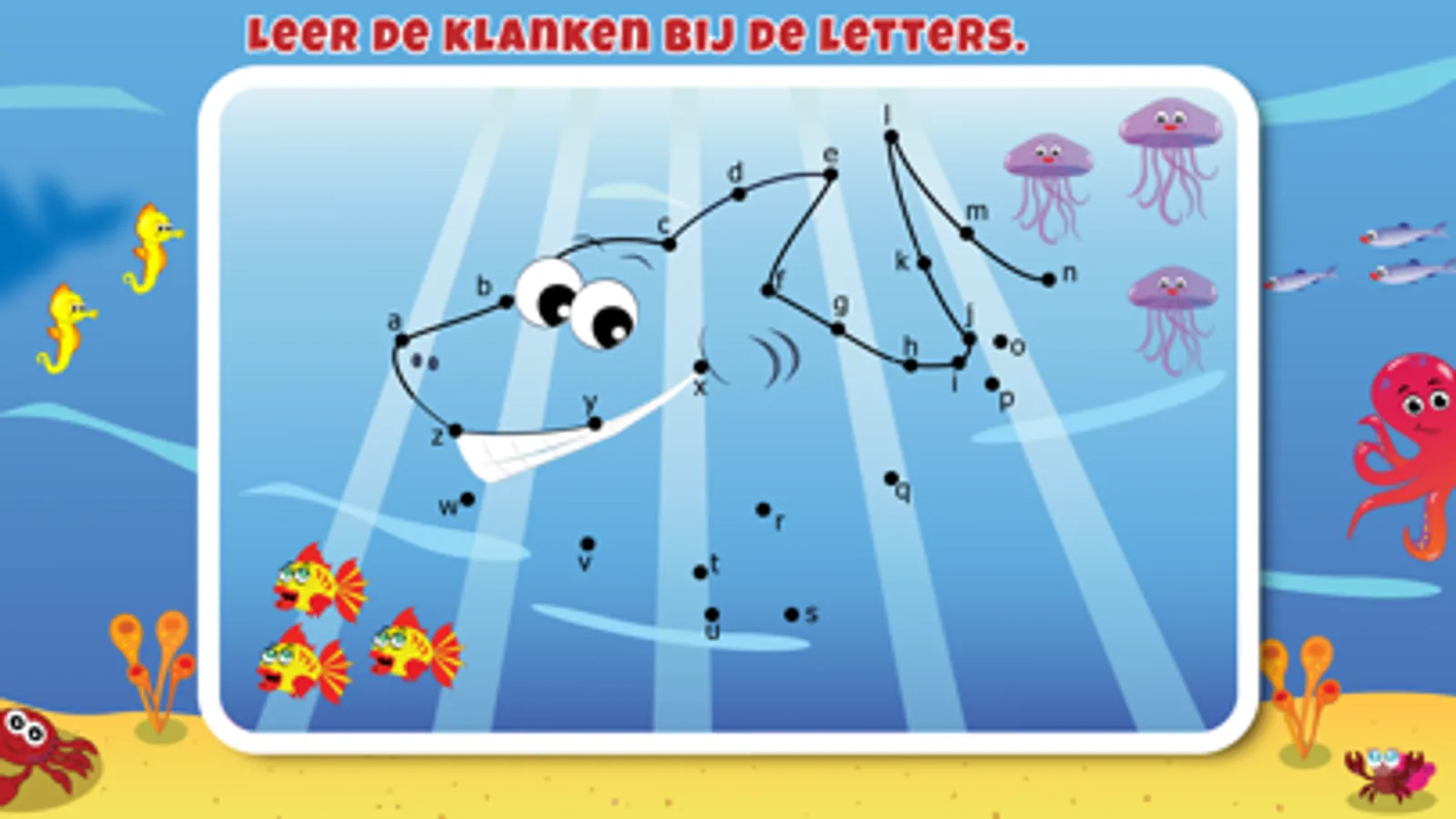De app bestaat uit zeven leuke oefeningen die je kind helpen om het lezen van de letters onder de knie te krijgen.