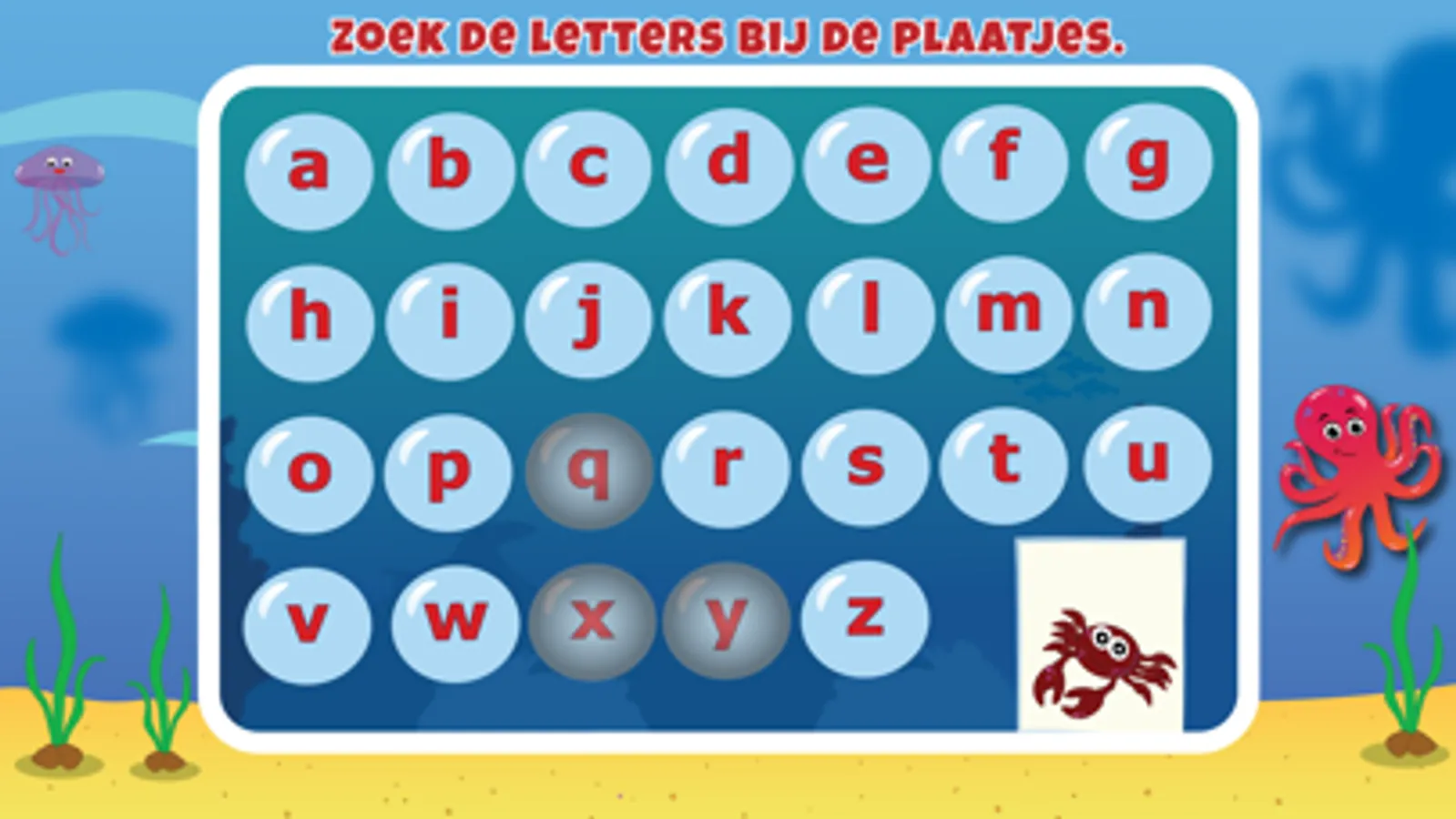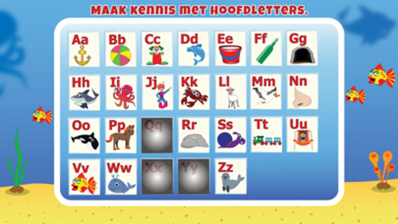 * Plaatjes afmaken door de gevraagde letters aan te raken.