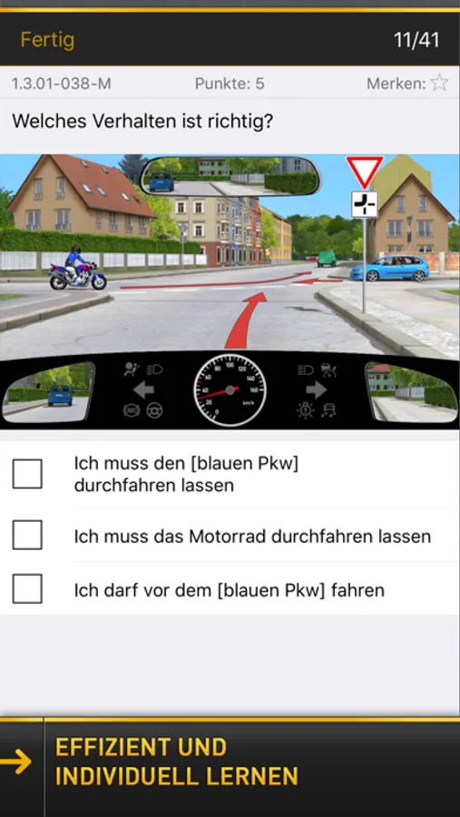 • Schwere Fragen zum Schluss prüfen, markieren und gezielt lernen