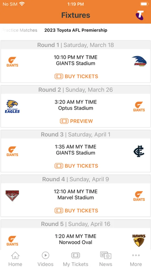 - Match Centre, including new team and player stats, and in-game video highlights