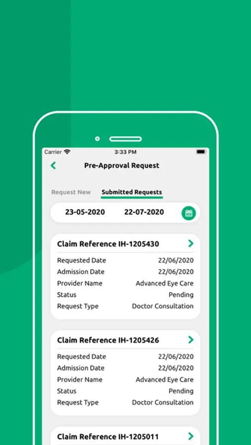 - Reimbursement Claims: The member can submit and track his Reimbursement Claims directly through the App, that will automatically list the documents needed per type of reimbursement (In-Patient, Out-Patient, Prescription Medicine, Doctor Consultation)