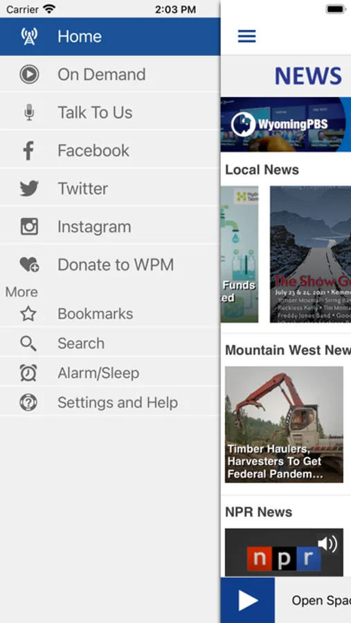 The Wyoming Public Media App allows you to listen to WPM, pause and rewind the live audio, and view the program schedule for all the WPM streams at once! You can explore On Demand content, search for programs, bookmark a program for later, and wake up to WPM with the alarm clock!