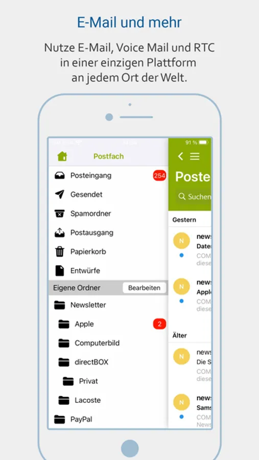 ▪ Do not miss important message on the move. Receive and send emails, SMS, fax and voice messages securely on your Smartphone or tablet.