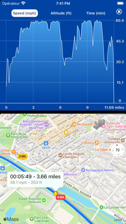 It displays your track, your position and live information such as your speed, altitude or average speed.