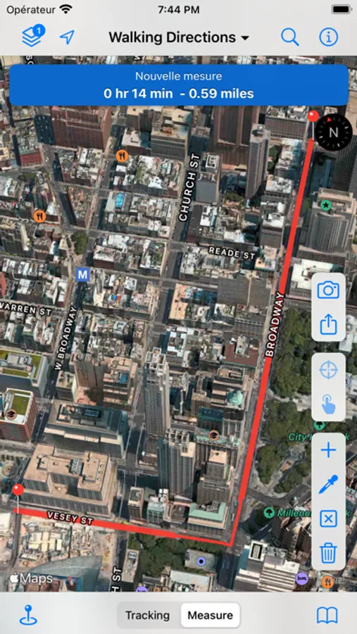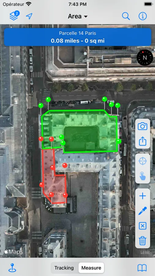 - measure distances, surface areas and perimeters using pins (points) on the map