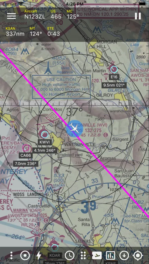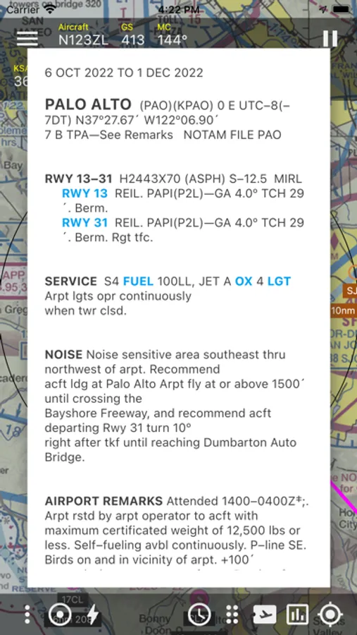 Features include manual and automatic flight logging, night calculations, VFR sectional charts, IFR charts, georeferenced approach plates, airport diagrams, departure and arrival procedures, ADS-B traffic, FIS-B weather and NOTAMs, pilot currency, weight and balance calculations, flight risk analysis, custom logbook fields, automatic time zone conversions, and much more. In-flight FIS-B data includes NEXRAD, Turbulence, Cloud Tops, Lightning, Icing, SIGMETs, AIRMETs, CWAs, TFRs, Winds Aloft, and PIREPs. Easily create flight plans with airports, navaids, and FAA waypoints. Multiple timers let you track flight parameters.