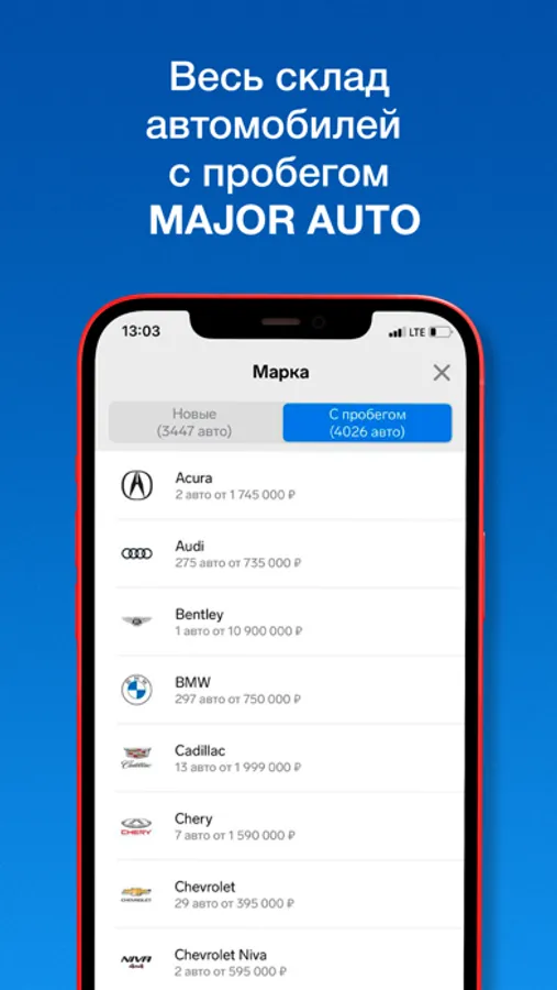 Major Auto — это официальное приложение для покупки автомобилей и записи на техническое обслуживание. Автомобильный холдинг Major Auto является лидером автобизнеса в России и насчитывает 122 салона и сервисных центра по всей Москве и Санкт-Петербургу — выбирайте максимально удобный для вас! Более 12 000 автомобилей с пробегом и новых автомобилей от официального дилера десятков ведущих марок.