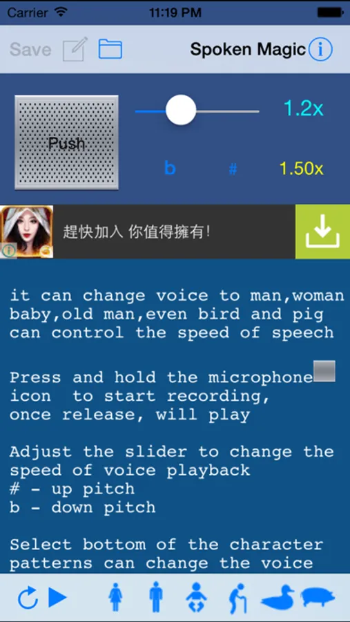 This app can change voice to men, women, babies, old men, even birds and pigs.
