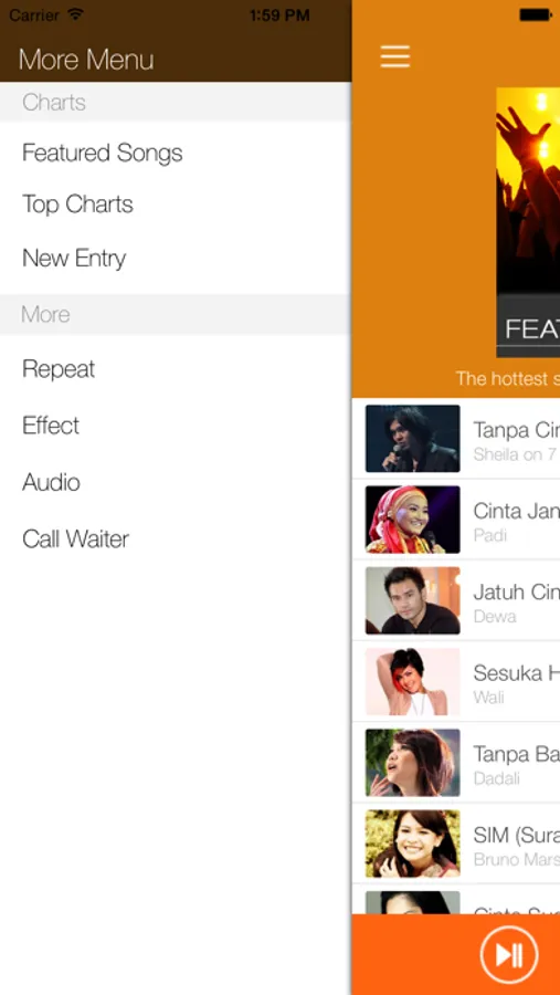 - Play, pause, repeat and stop the currently playing song