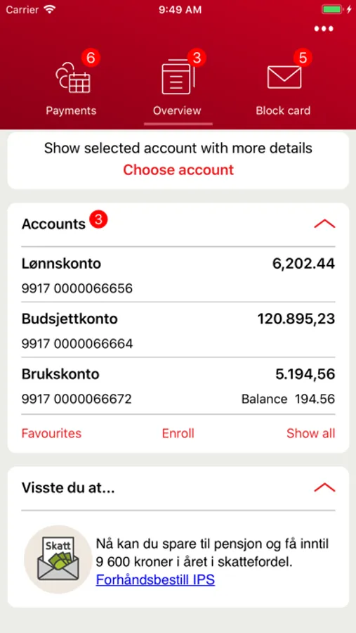 * Check your balance on accounts, creditcards and loans