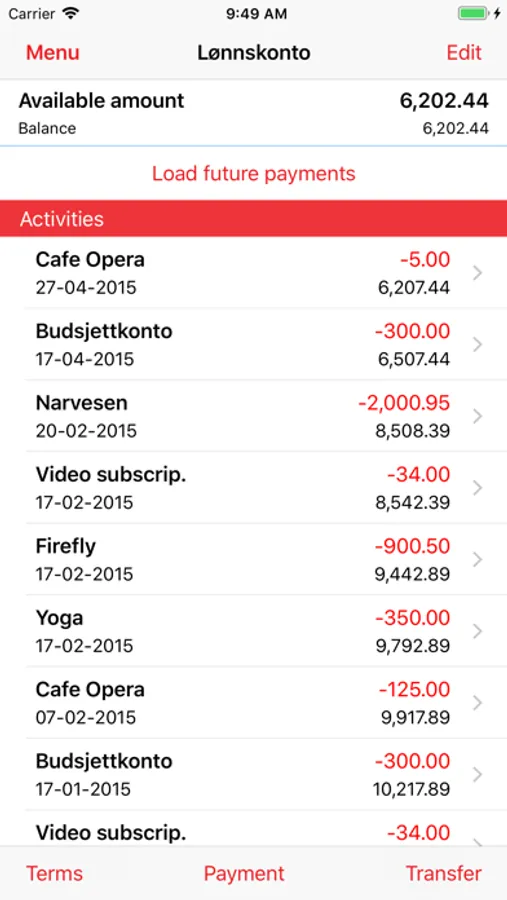 * Check transactions and future payments