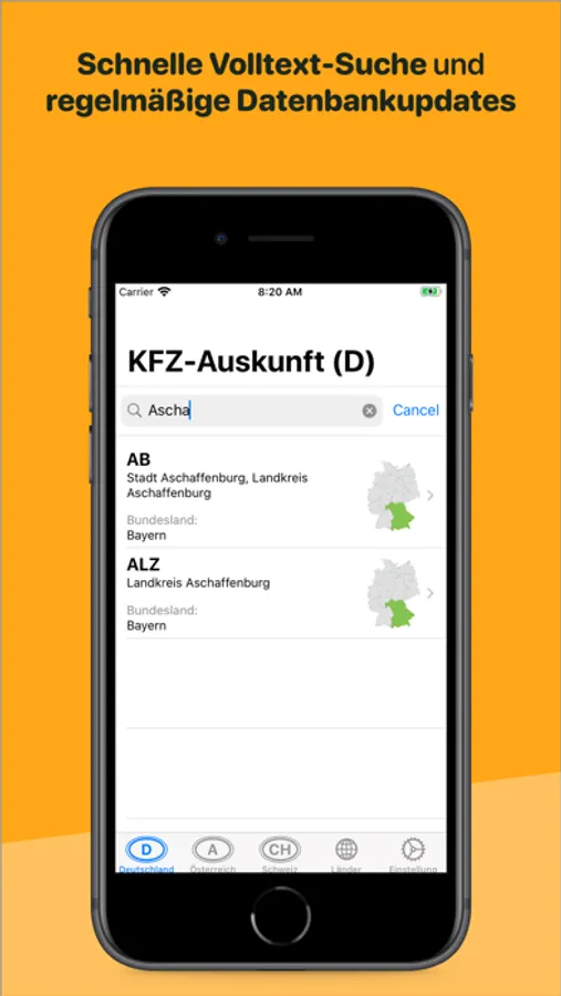 Mit KFZ-AuskunftHD kannst Du auf die Schnelle sehen, woher dein Vordermann mit dem unbekannten Kfz-Kennzeichen kommt. Als Universal-App läuft KFZ-AuskunftHD sowohl auf dem iPhone als auch auf dem iPad.
