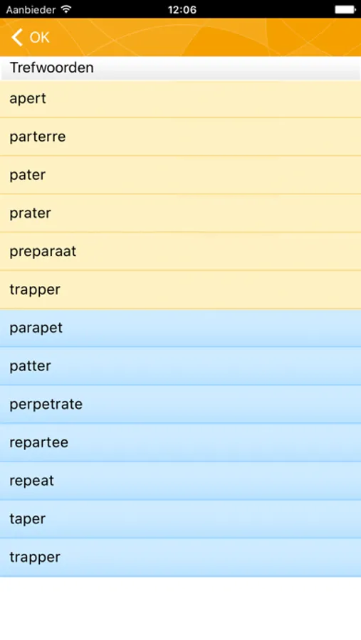 • De trefwoordenlijst draait mee, terwijl je een zoekterm intypt: tik het woord aan zodra je het ziet.
