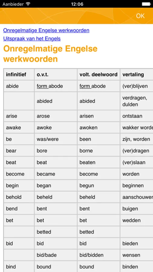 • Grammatica met alle belangrijke Engelse onregelmatige werkwoorden.