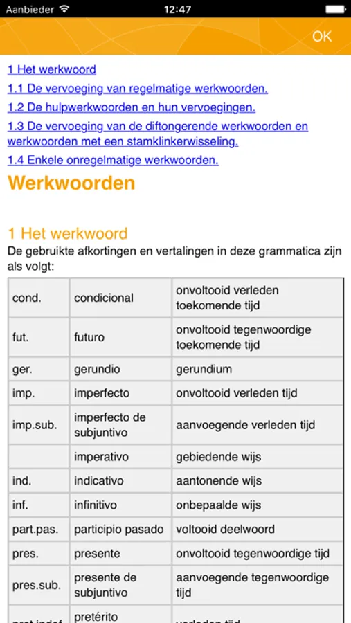• Grammatica met alle belangrijke Spaanse onregelmatige werkwoorden.