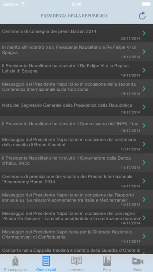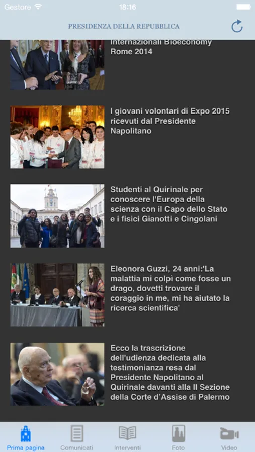 La procedura consente inoltre di accedere all'elenco delle fotografie e dei video che documentano i principali impegni del Presidente.