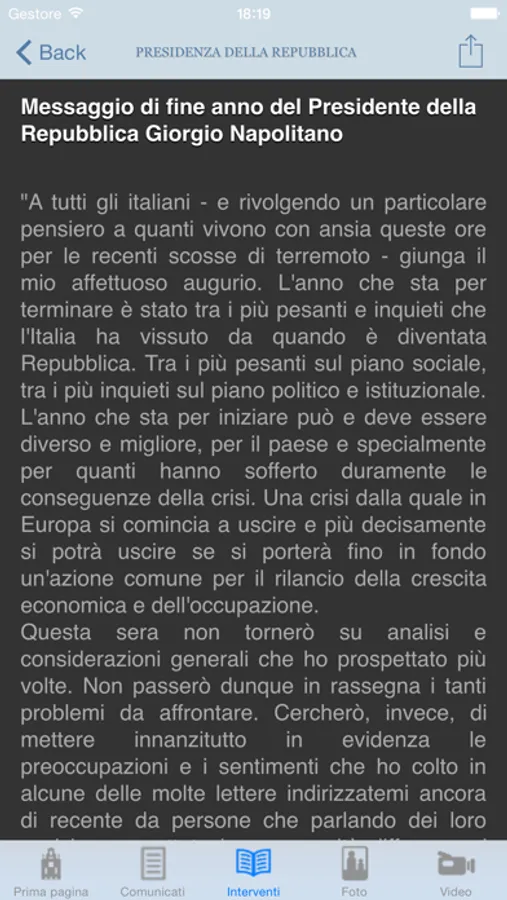L'applicazione ufficiale del Quirinale con le ultime notizie sull'attività del Presidente della Repubblica permette di consultare gli interventi e le interviste del Capo dello Stato e i comunicati della Presidenza.