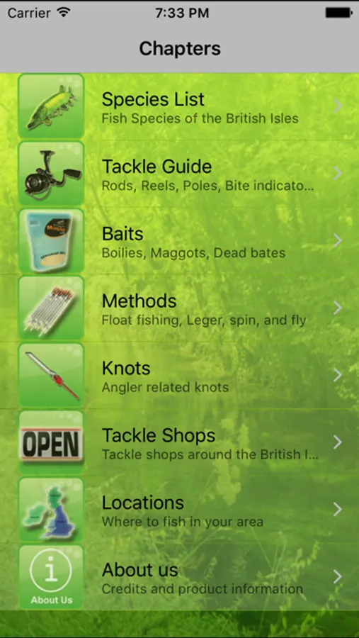 The Coarse and Game Fishing guide is a comprehensive application featuring a species guide, bait guide, tackle guide, method guide and also includes a fishery and tackle store locator.