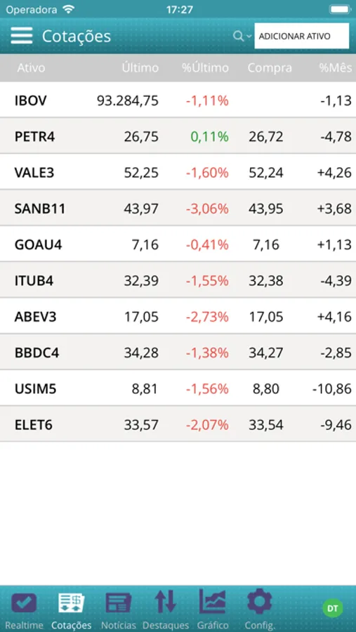 - Relatórios do mercado financeiro (altas, baixas, mais negociadas e de maior volume)