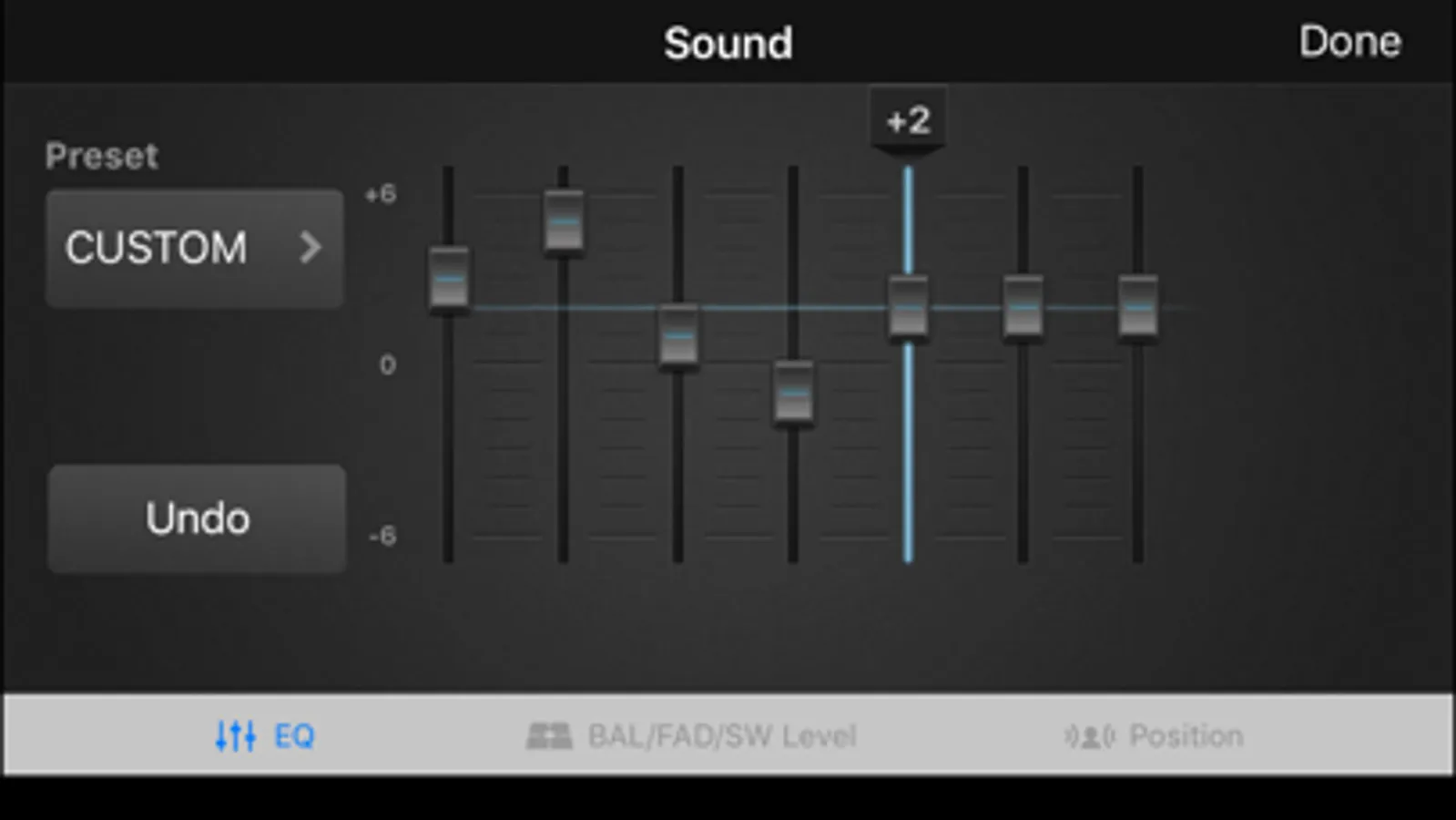 Full settings of Equalizer, Fader/Balance/Subwoofer, and Listening Position available using smartphone as a remote screen.