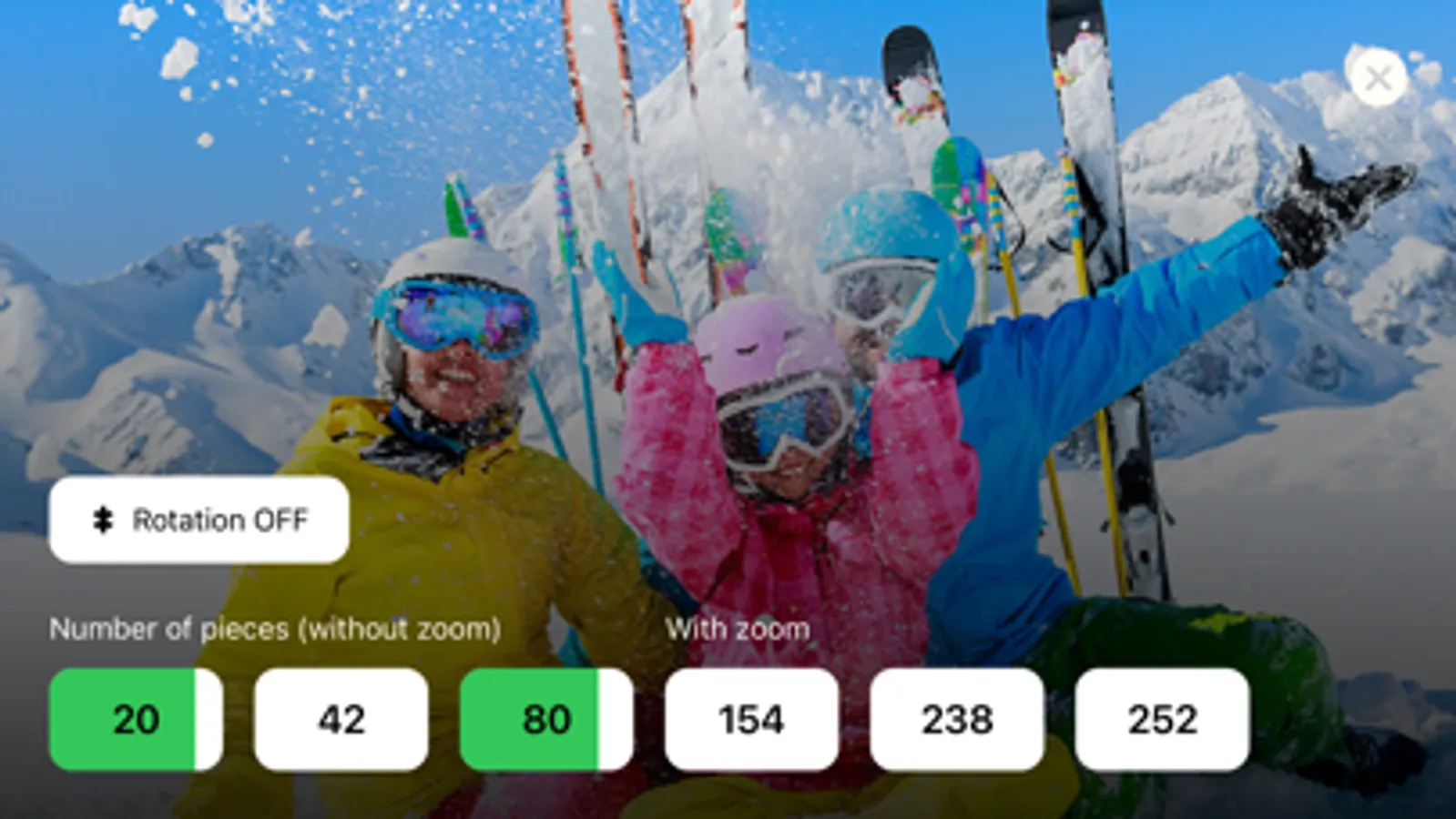 - 8 levels of complexity: from  20 pieces up to 1110 pieces, available for any puzzle;