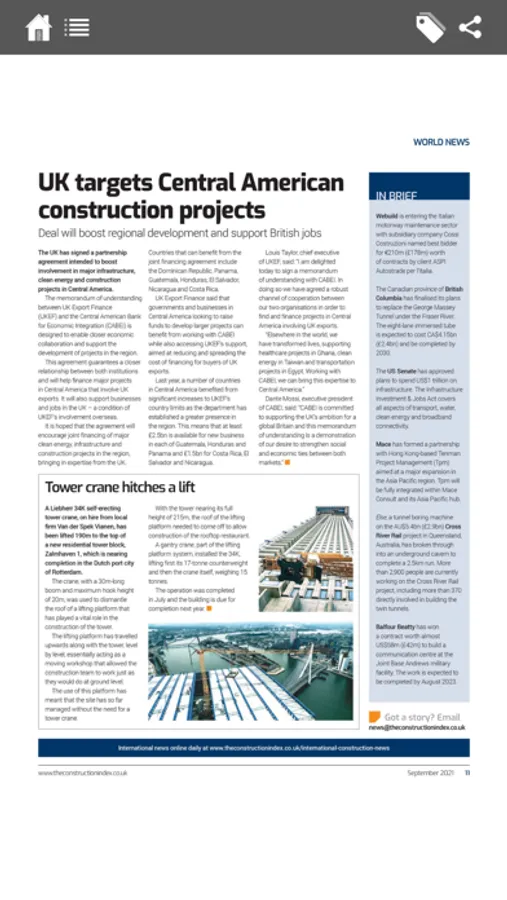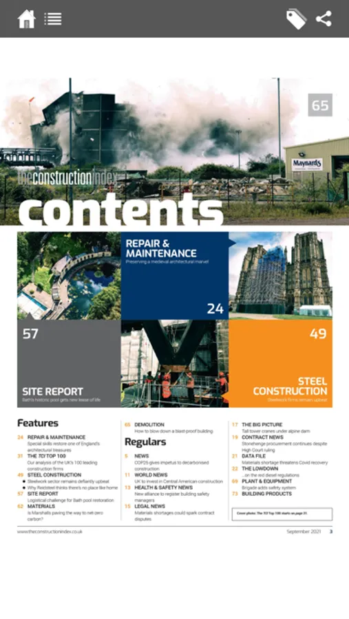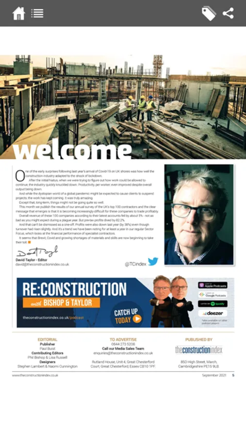 The Construction Index Magazine app is simple to use, beautifully designed and user friendly, with free access to over 70 feature packed issues. The magazine offers essential reading for anyone working for main and specialist contractors, plant hirers and organisations in the construction supply chain.