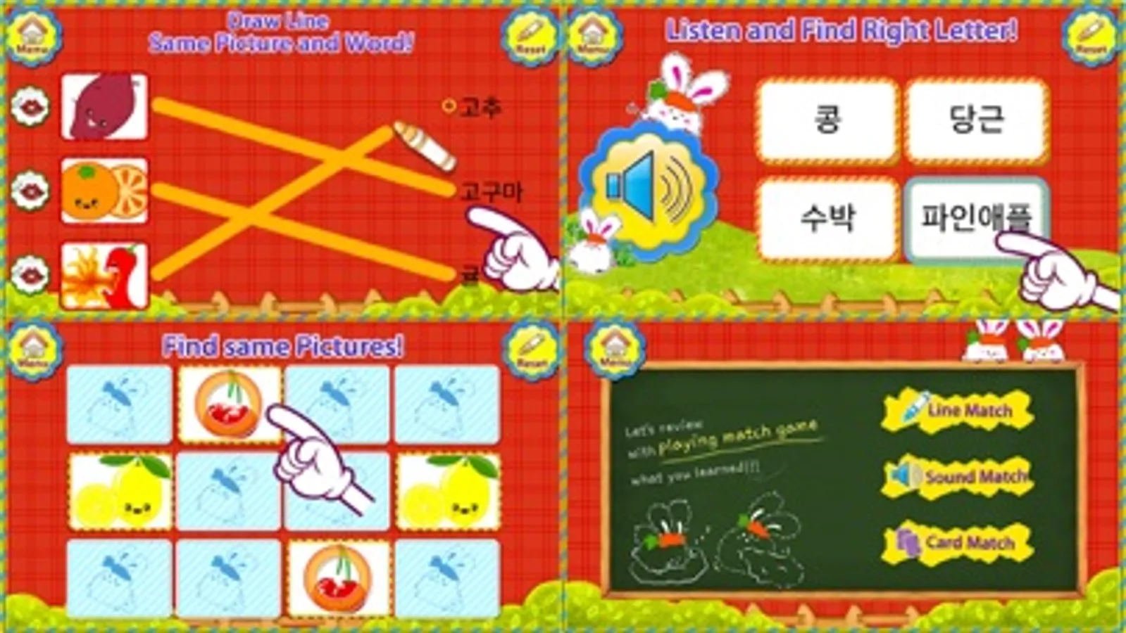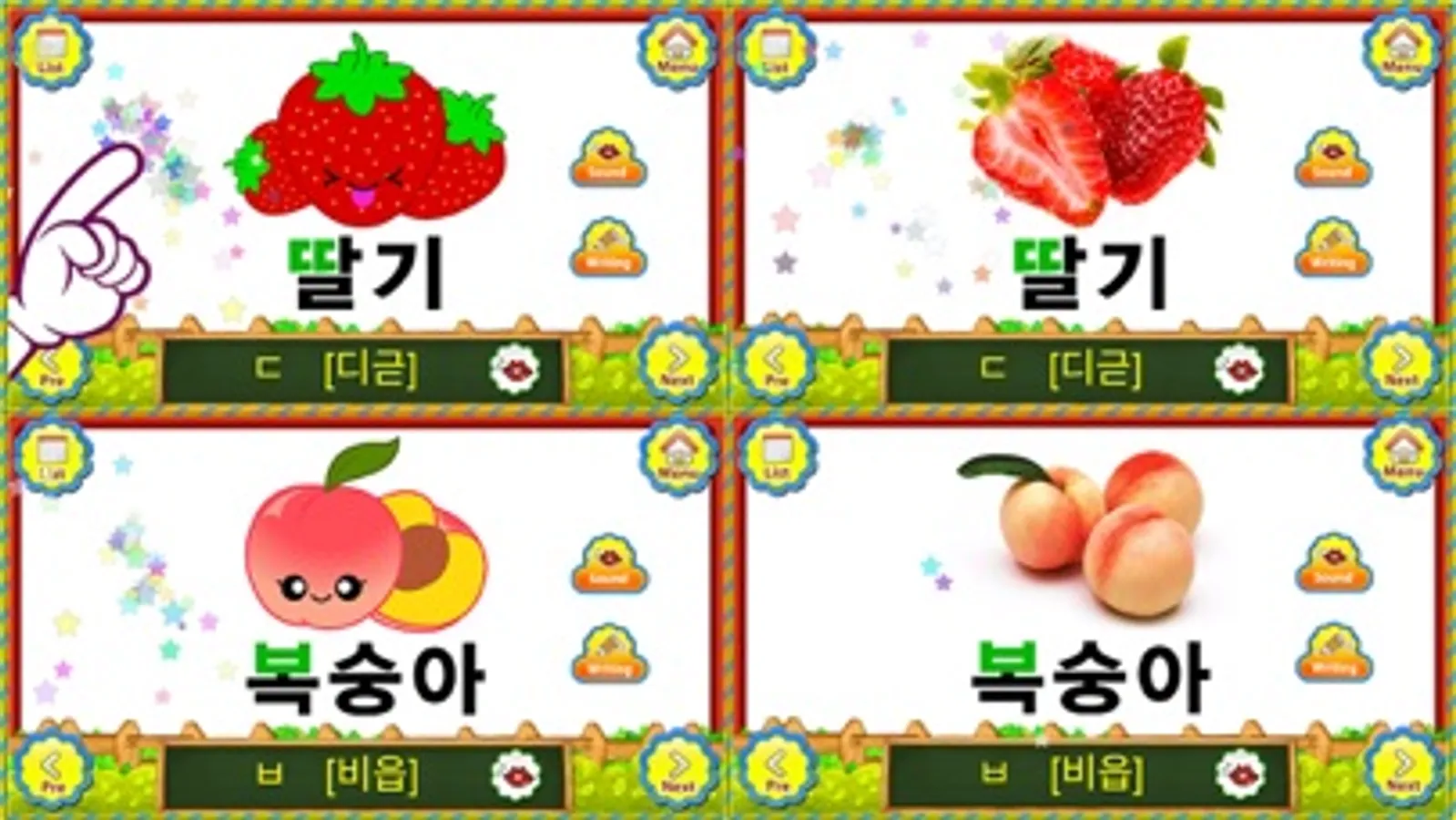 Adorable Images + Real Pictures + Pronunciations + Hangul Writing Practice + Three kinds of funny games!!