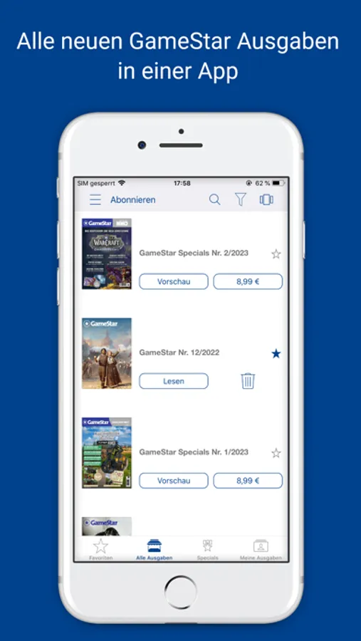 - Komplett: Sie haben alle bisher gekauften Ausgaben immer dabei, versehentlich gelöschte laden Sie einfach noch mal herunter.