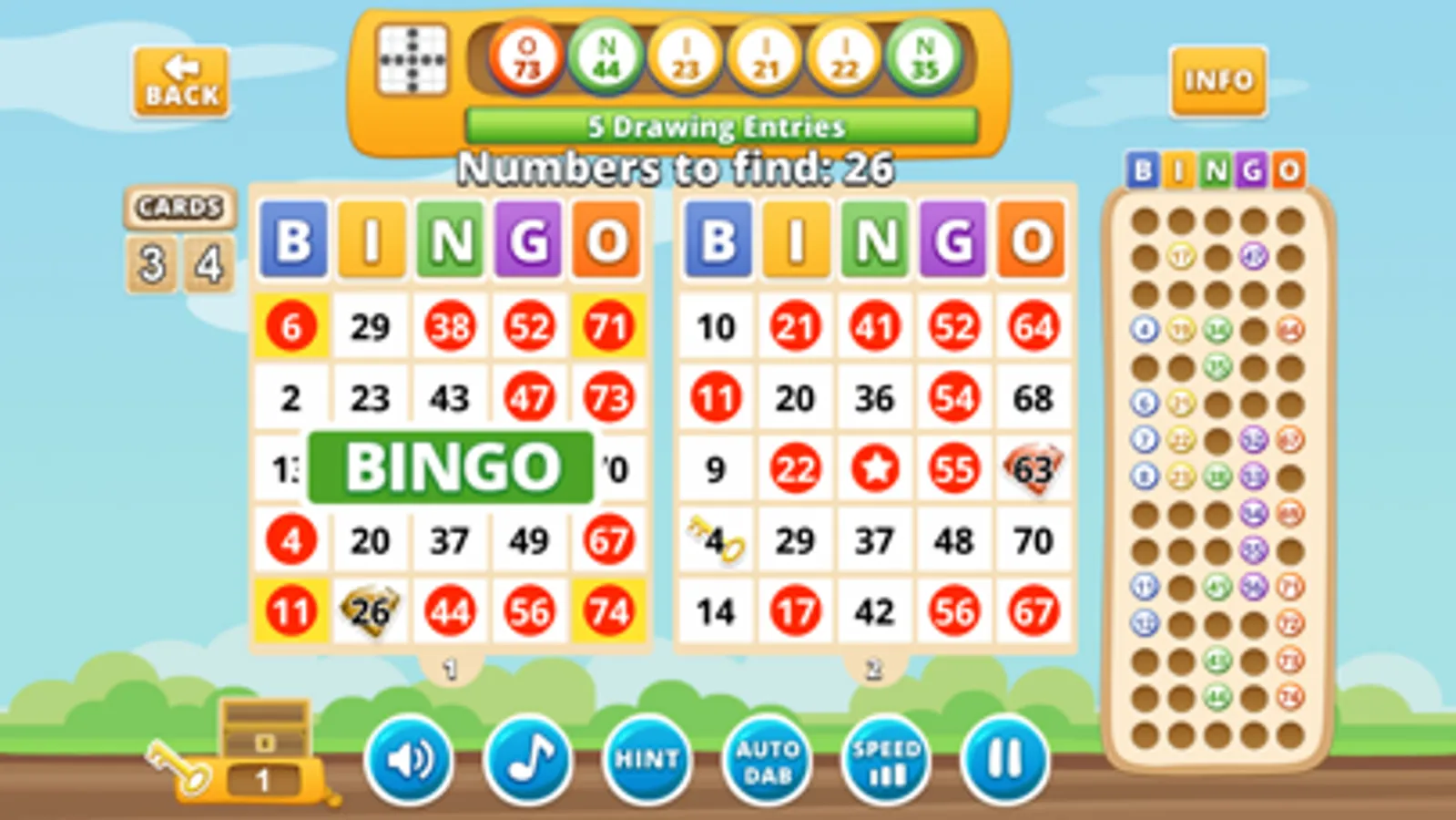 The official Bingo app from the Michigan Lottery! Play for fun or play for the chance to win prizes! In Bingo, players who are at least 18 years of age, can submit eligible non-winning tickets to enter into a 2nd chance promotion! This Bingo game features a brand-new theme, multi-card play, speed controls, in-game multipliers and auto wins. Eligible Bingo tickets can only be purchased at retail.