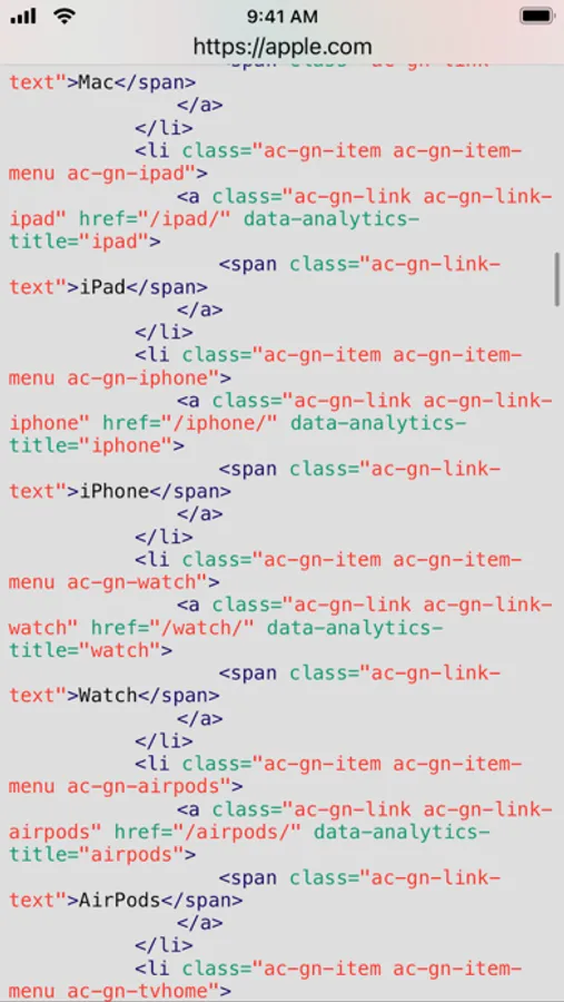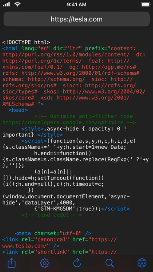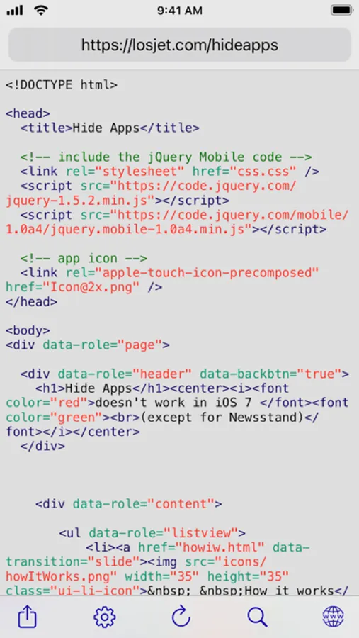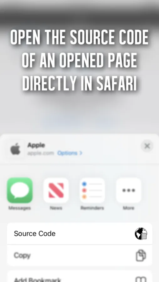 With the Source Code Reader app it's easy to view the source code of a site directly on your iPhone or iPad. You can do this in the app or directly in Safari with the built-in Safari extension.