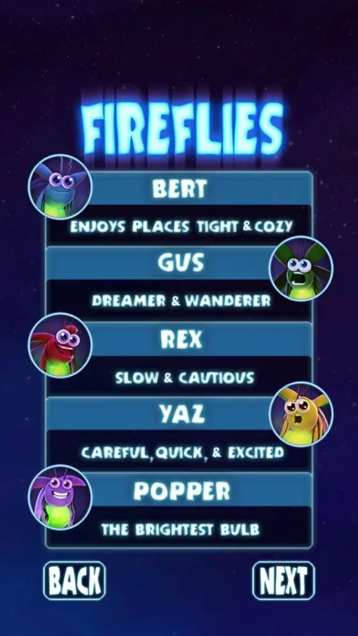 Evil Dr. Crazypants is out trapping innocent fireflies. Someone needs to come to their rescue. Is that you? Help catch them before the doctor does, using quick wits and help from Bert and his pals -- Gus, Rex, Yaz, and Popper. Maybe you can help brighten the night and the hearts of some loving little bugs.