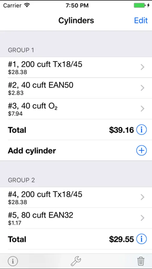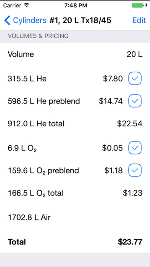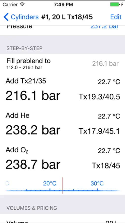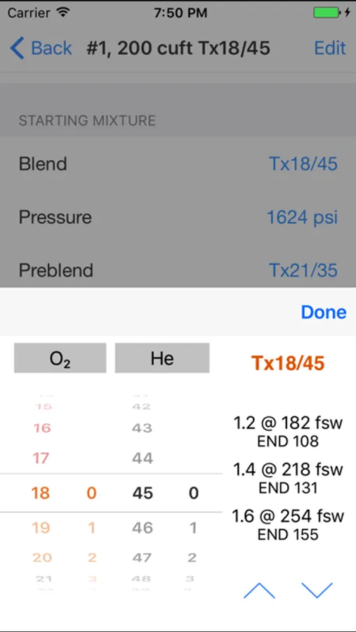 Technical diving gas partial-pressure blending app. Supports nitrox and - via in-app purchase upgrades - trimix and pricing/volumes used.