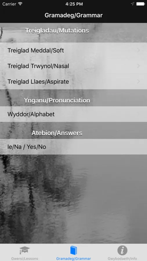 The app has information on learning groups around the South Wales area focusing on the South Welsh dialect.