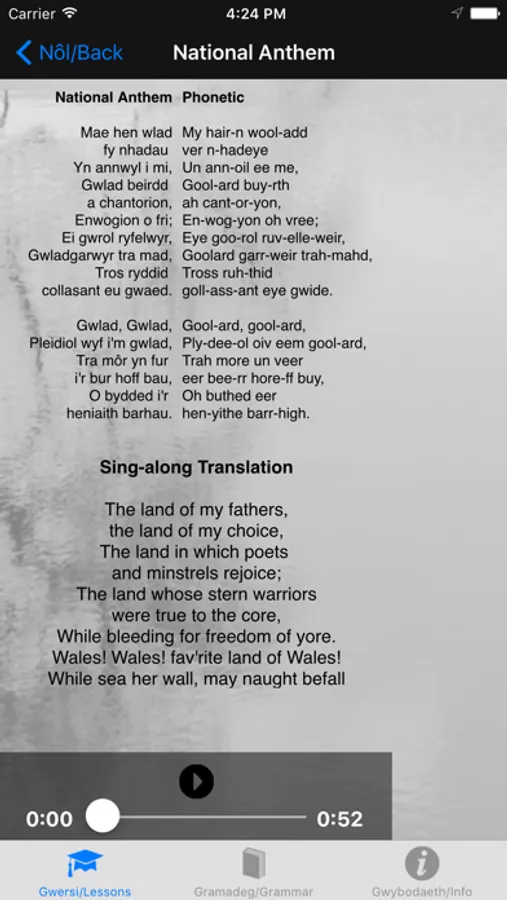 Welsh for Beginners is a learning tool to begin or enhance your Welsh vocabulary on the go. The national anthem audio file will help you sing along and learn ‘Mae Hen Wlad Fy Nhadau’ in the simplest way possible.