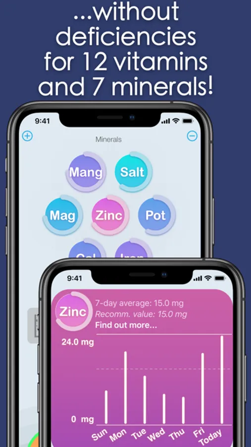 • Vitamins evaluation: follows 12 vitamins and 7 minerals to avoid deficiencies.