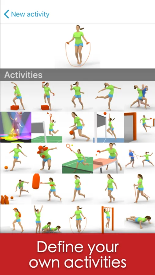 • New sport: an activity is not on the list? Define it using an example (example: I spend 350 kCal for 45 minutes).