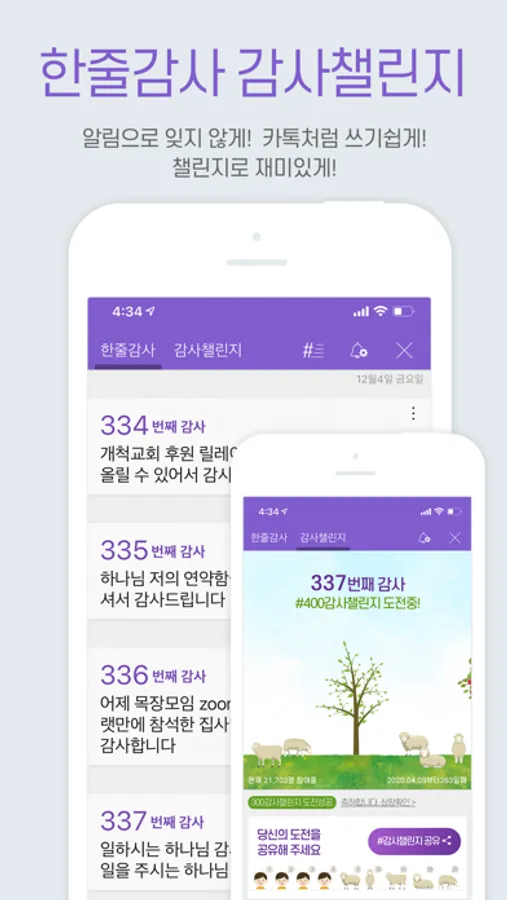 - 카톡처럼 쓰기 쉽고, 알림으로 까먹지 않게, 감사챌린지로 재미있게 써보세요.