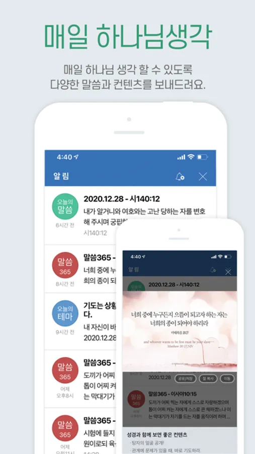 - 하나님 생각 할 수 있도록 알림을 통해 다양한 말씀과 컨텐츠를 보내드려요.