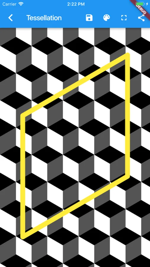 In this app, you choose from a variety of tessellation shapes such as triangle and square. You begin with that basic shape. You then get to change the shape by "drawing" with your finger. It's less like painting and more like drawing with a ruler. (Or, if you like, it's less like pixel drawing and more like vector drawing.) Of course, you do not have complete freedom to draw whatever shape you want because the shape must tessellate. The app does an excellent job of maintaining the tessellation as you draw. You also have control over the colors. It's really quite entertaining.