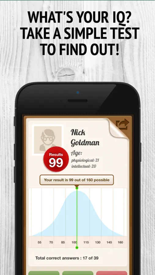 - Get the result in a form of number from 50 to 160, which is your IQ.
