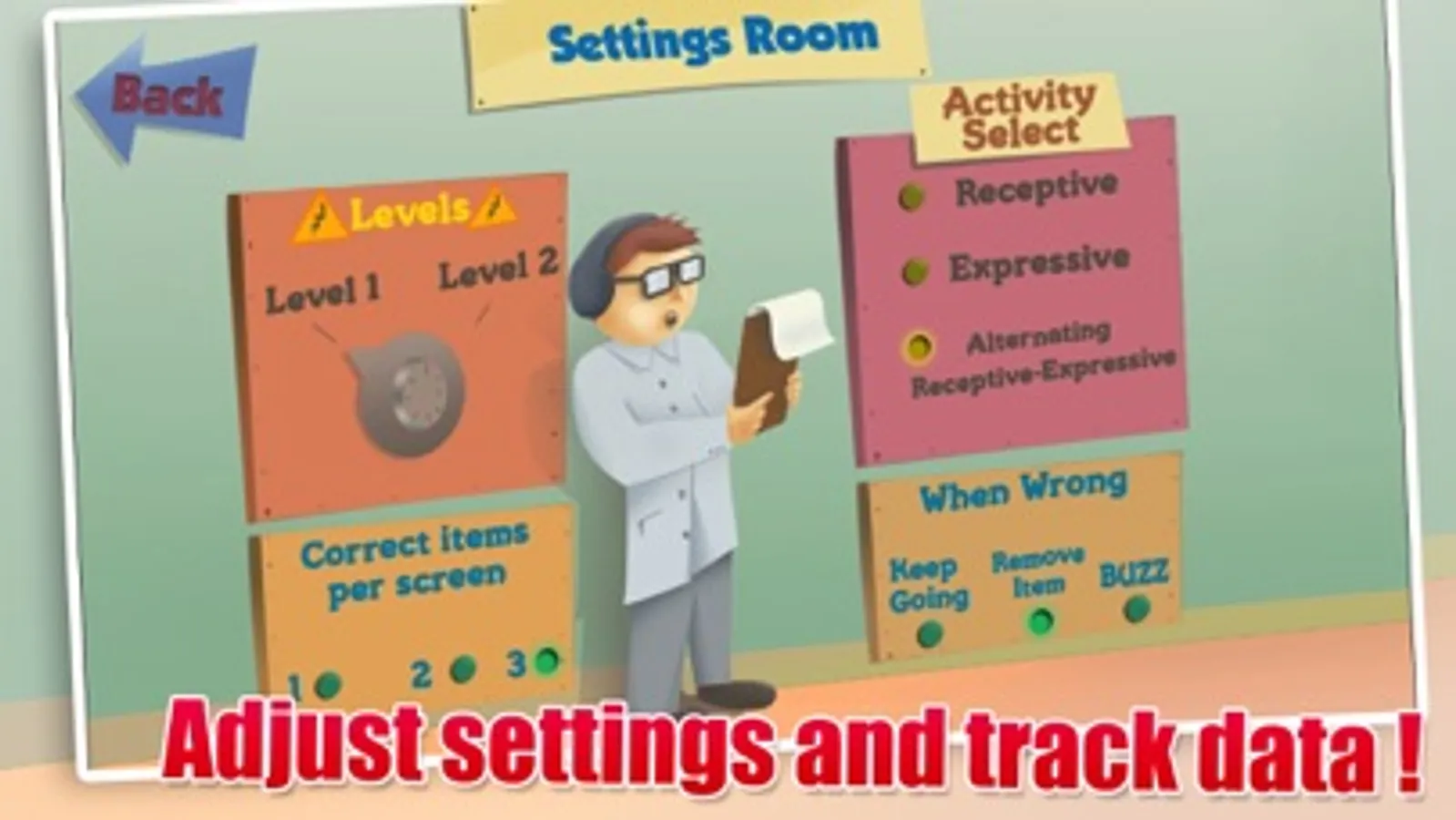 Expressive and Receptive Activities: Engage students with diverse and adjustable activities, including Quick Play and Receptive-Expressive combination exercises.
